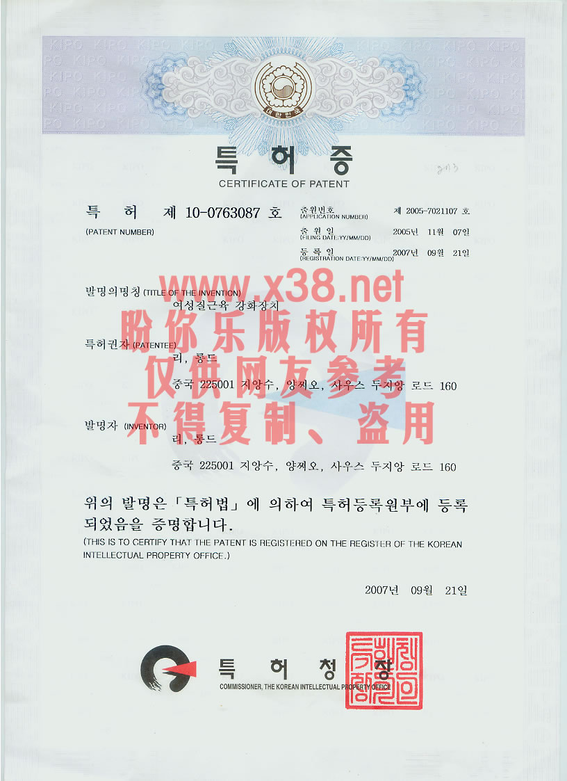 2007年10月29日:盼你乐“女性缩阴器”产品被授予韩国发明专利。点击这里查看专利证书。